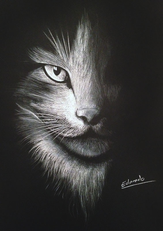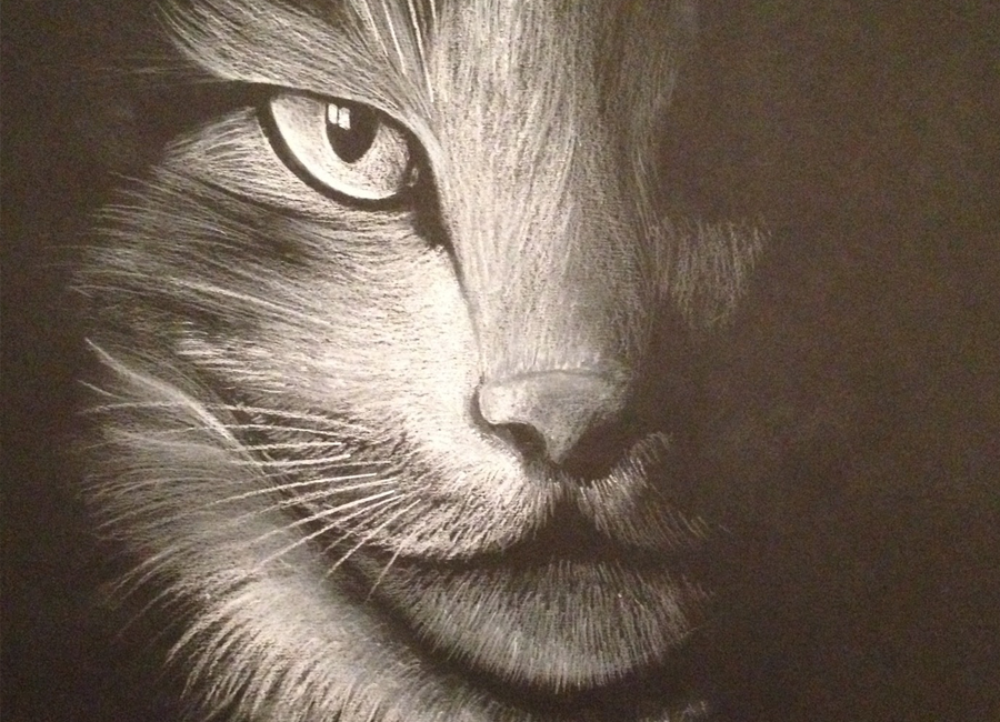 Dessin au crayon blanc sur Canson noir.